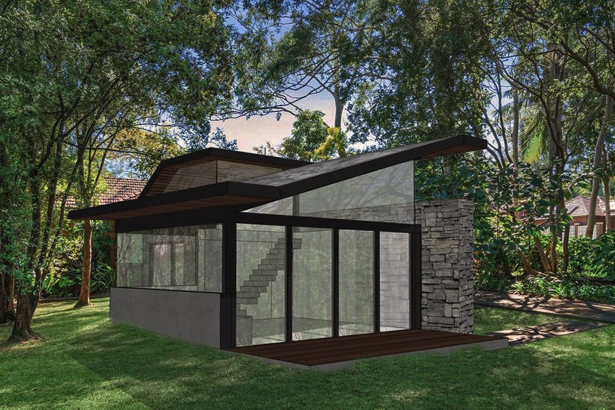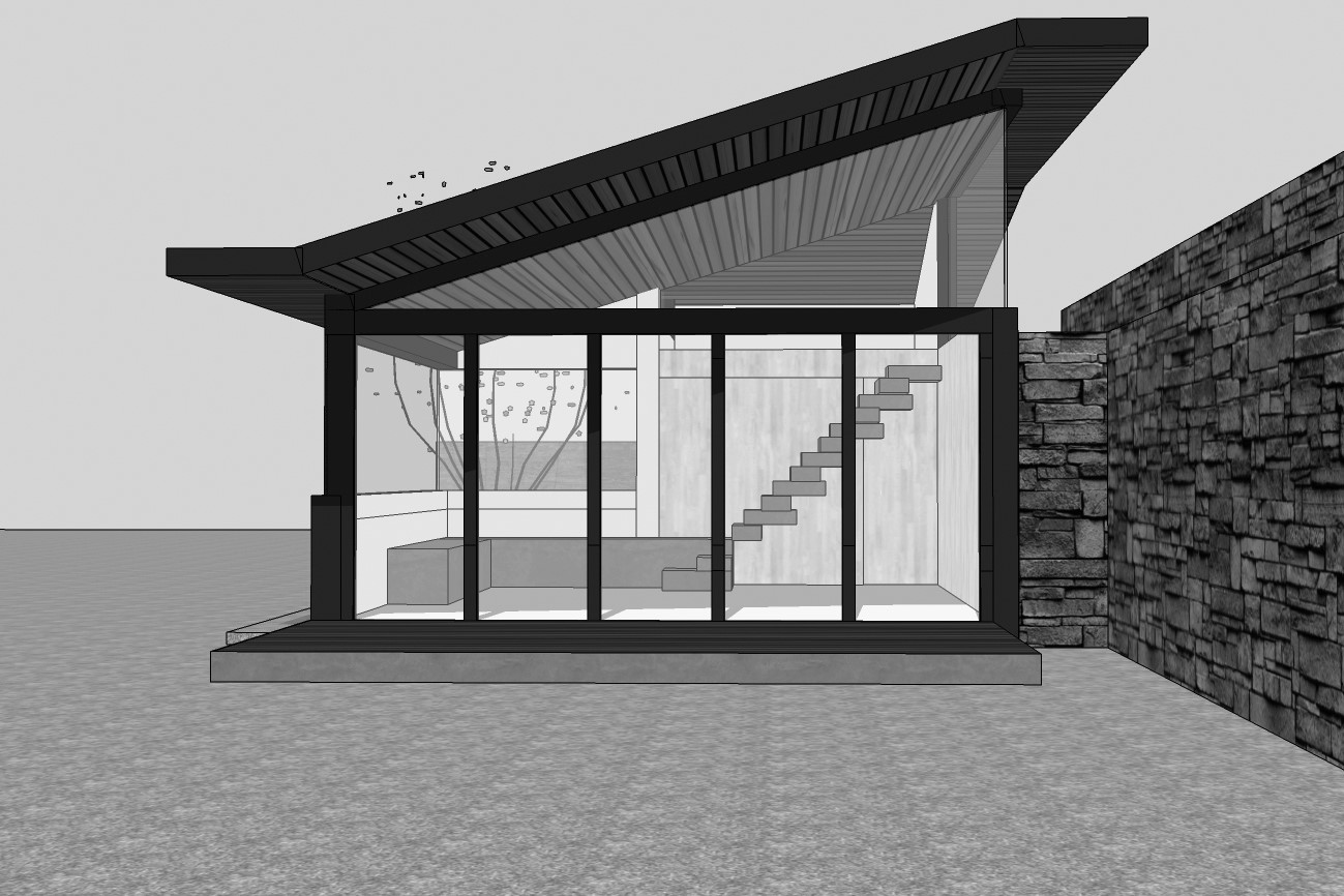 designed with sustainable principles and includes raw materials like form concrete,