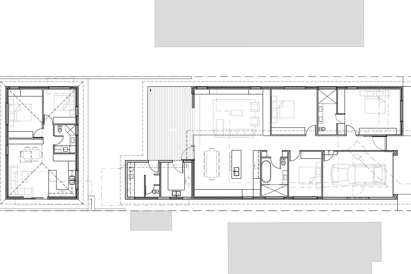This new, single-storey dwelling and granny flat were designed for a family looking for